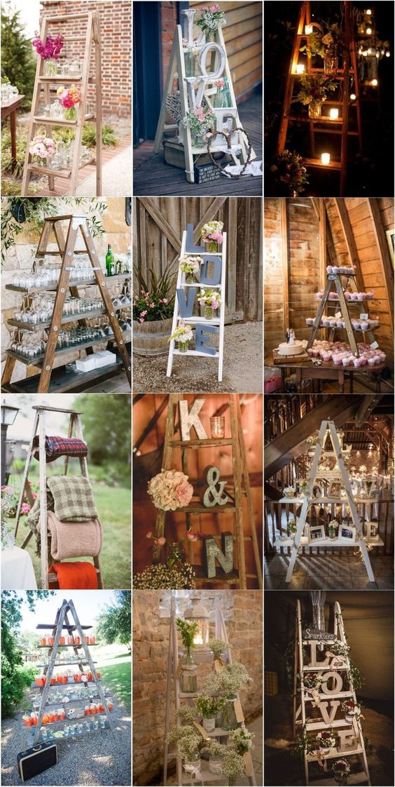 For those who are planning a country outdoor wedding or a barn wedding, ladders seem to be a must for the decoration as they are both cost-effective and ornamental for the wedding. They can either serve as dessert bar, or a unique wedding backdrop for photos. You can even try to make them wedding arches by adding decorations and flowers. They really play a significant role in making your wedding more interesting and rustic. Now check out the gorgeous wedding decoration ideas with ladders we’ve gathered to get inspired!
