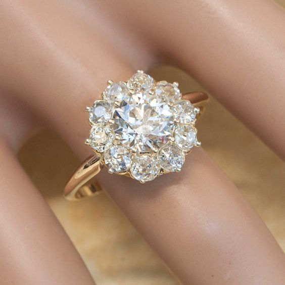 Flower Diamond Halo Engagement Ring | Image Credit: Etsy.Ringscollection