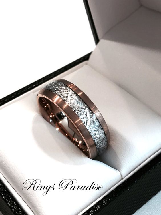 Gunmetal & Rose Gold Tungsten Wedding Band via: Shop-Jul